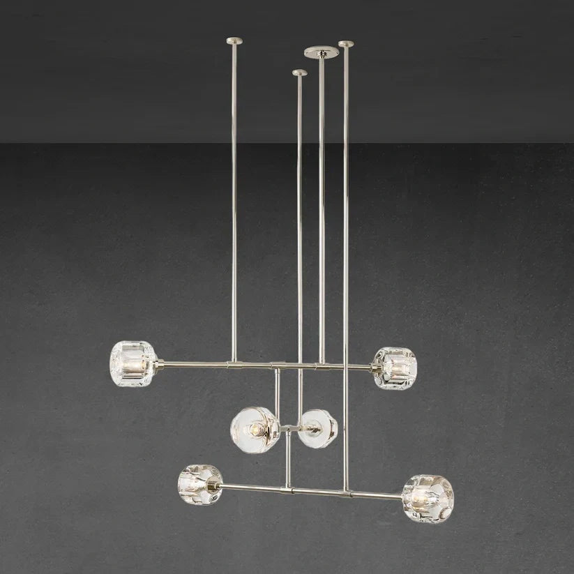 Jonathan Browning's Domaret collection captures a sense of understated elegance. Set on a clean-lined mobile frame, its curved surfaces are crafted from cast K-9 crystal and polished by hand to beautifully reflect and refract the light. The soft, rounded forms are cut with smooth oval facets on four sides to create a clear view through the crystal, the subtle embellishment lending relaxed refinement.