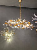 Designer Favorite Brass Branch Chandelier with Artistic Flower Glass for Dining Room Living Room and Kitchen Island