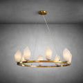 With eight light sources and a generous 31.5" diameter, this chandelier delivers powerful yet gentle illumination—perfect for dining rooms, living areas, and grand entryways. Each alabaster shade features unique natural veining, ensuring every piece is one of a kind.