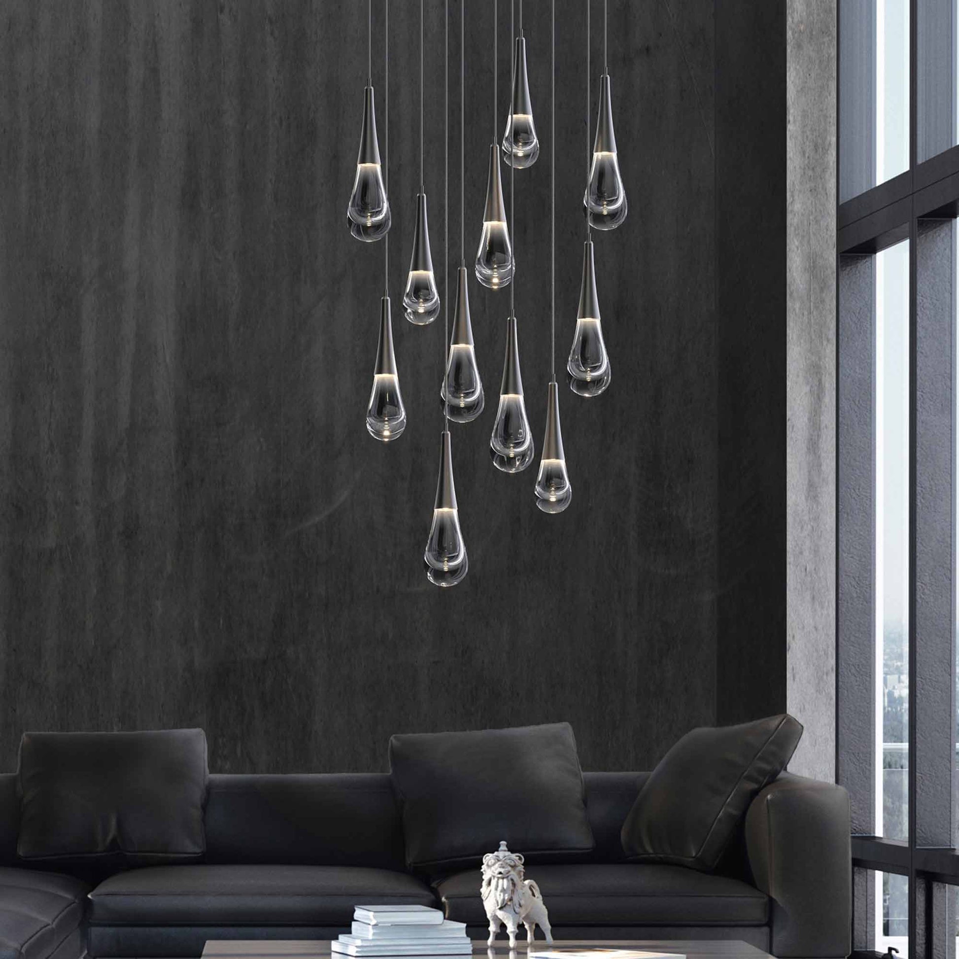 Each clear raindrop pendant is handmade, highlighting the artistic atmosphere. Each raindrop pendant is carefully blown and polished by workers with many years of manual experience. The fittings are made of solid brass with high surface finish and exquisite workmanship. Perfect presentation of this lighting, high-quality technology and high-quality materials. Highlight the artistic atmosphere.