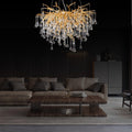 | Like dewdrops under a forest canopy, the crystal chandelier displays glistening glass beads that cascade from organic leaves and branches. This nod to nature gets a modern twist making it a natural in contemporary settings. G9 bulbs provide an inner source of illumination that causes the light to sparkle and reflect playfully off the countless gleaming surfaces sparking both curiosity and conversation. |