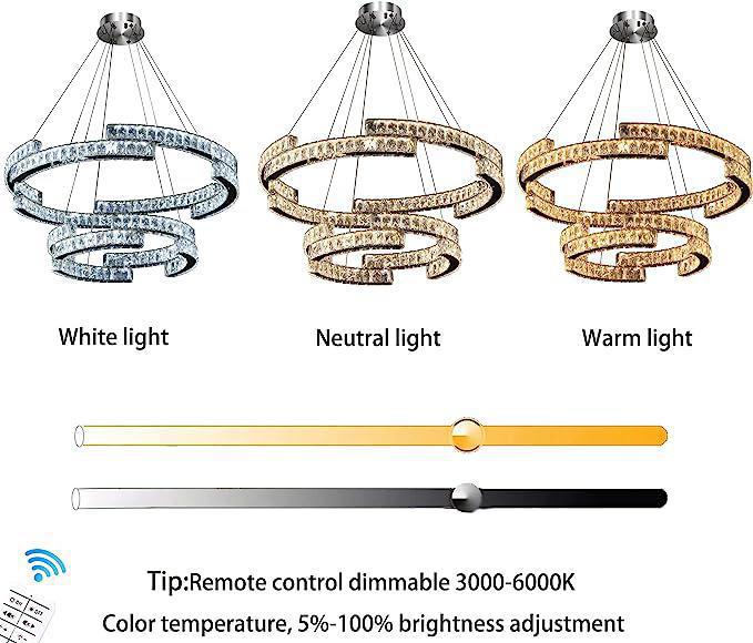 - BULB DETAILS : Including LED bulbs 76W, and remote control dimmable 3000-6000K color temperature, 5%-100% brightness adjustment, the chandeliers have their own dimmers, which can adjust different light colors according to mood