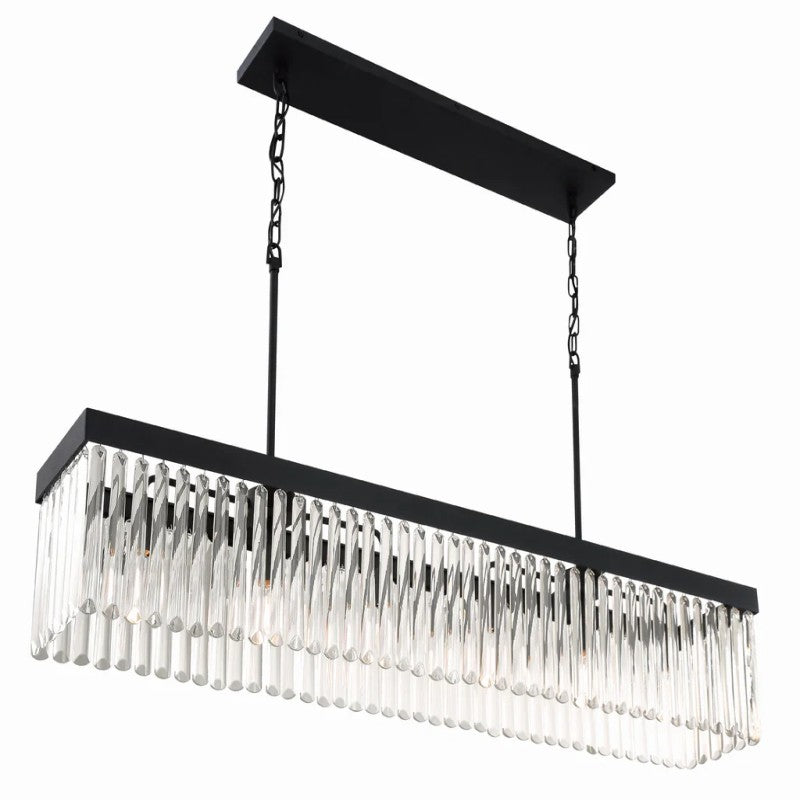 For example, let's say that you have a dining table with 60 inches in length. The chandelier should be between 30 (60 x 1/2) to 45 (60 x 3/4) inches in diameter or length (Same here 1/2 to 3/4 of the kitchen island length)