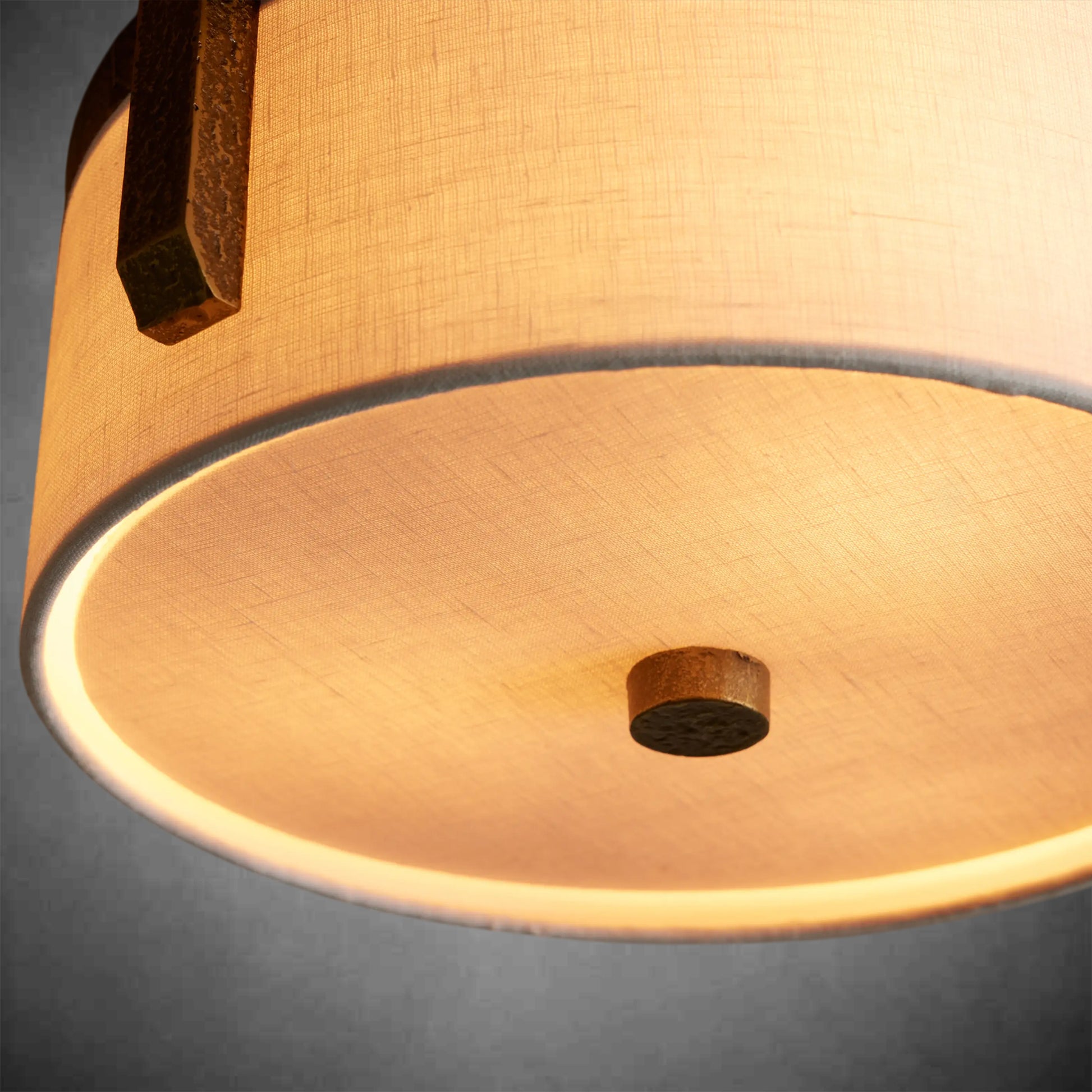 - Crafted by artisan partners from sand-casted brass with a textural, antiqued brass or bronze finish and white linen shade.