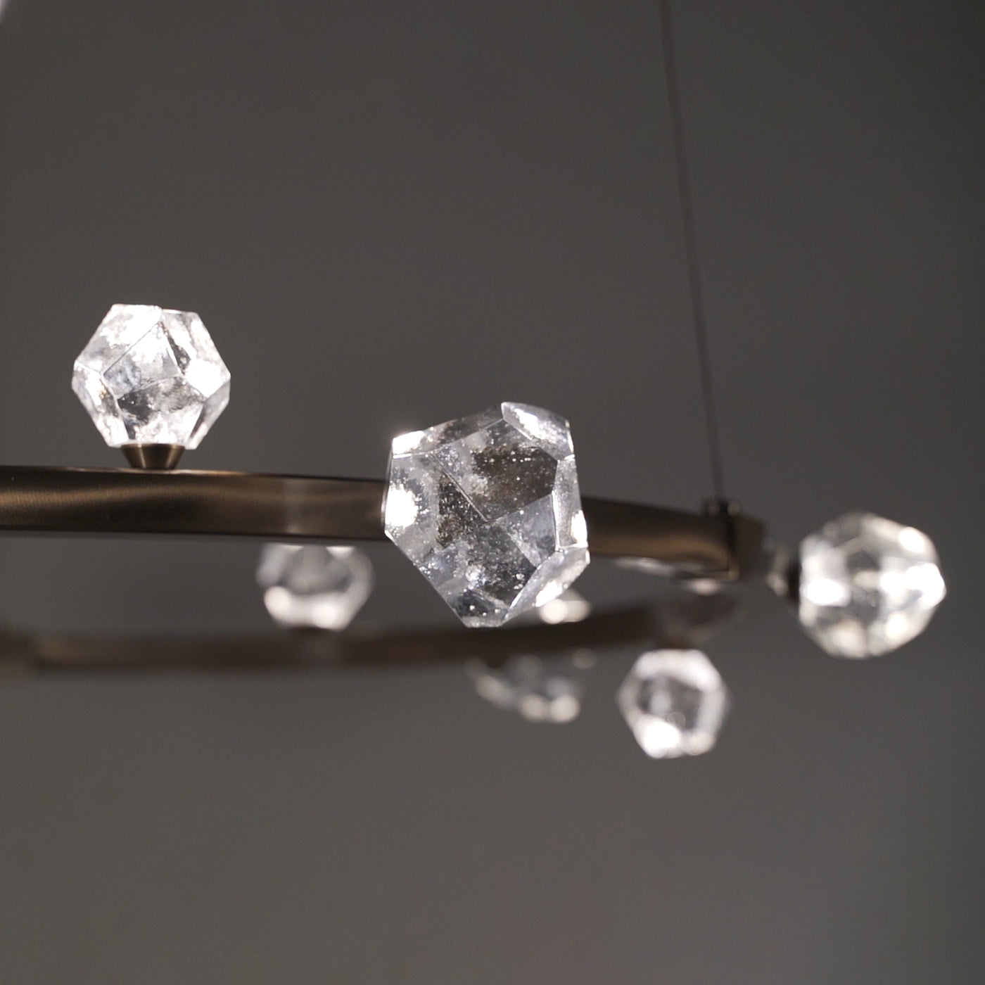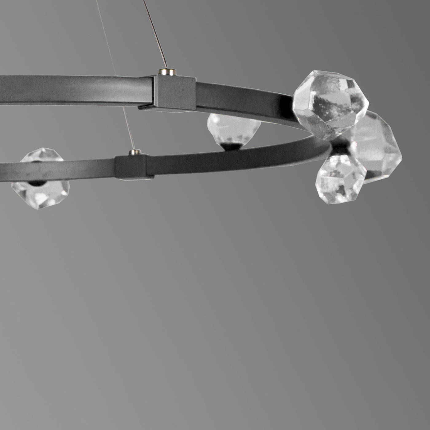 This new chandelier has a sleek profile that suits any style; the chandelier design features hand-cast glass, and the geometric diffusers of the flashing LED lights bring a celestial appeal.