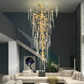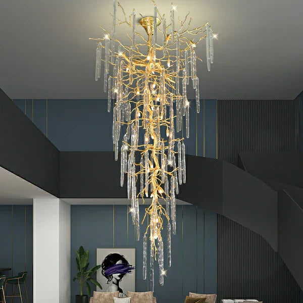 Extra Large Brass Tree Branch LED Chanderlier Crystal Bar Drops Ceiling Light Fixture For Foyer Living Room Hall
