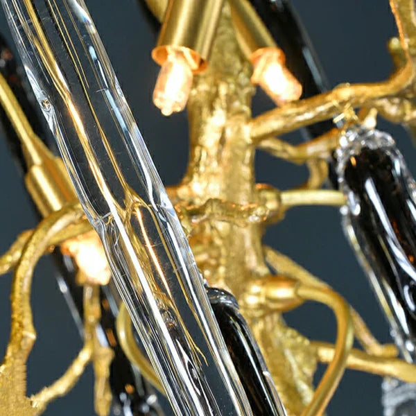 The whole light body is made of high-quality crystal and brass. It is designed into a luxury modern style. It is absolutely stunning no matter light turns on or not.