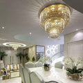 Extra Large Gold Flush Mount Crystal Light Round 3-layers Decorative Living Room/Dining Room Light Fixture