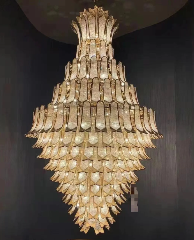 Extra Large Luxury Multi-tier Gold Crystal Chandelier for Stairs/Large High-ceiling Room