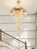Extra Large Retro Luxury Full Copper Crystal Chandelier for Staircase/ Duplexes/ Villas