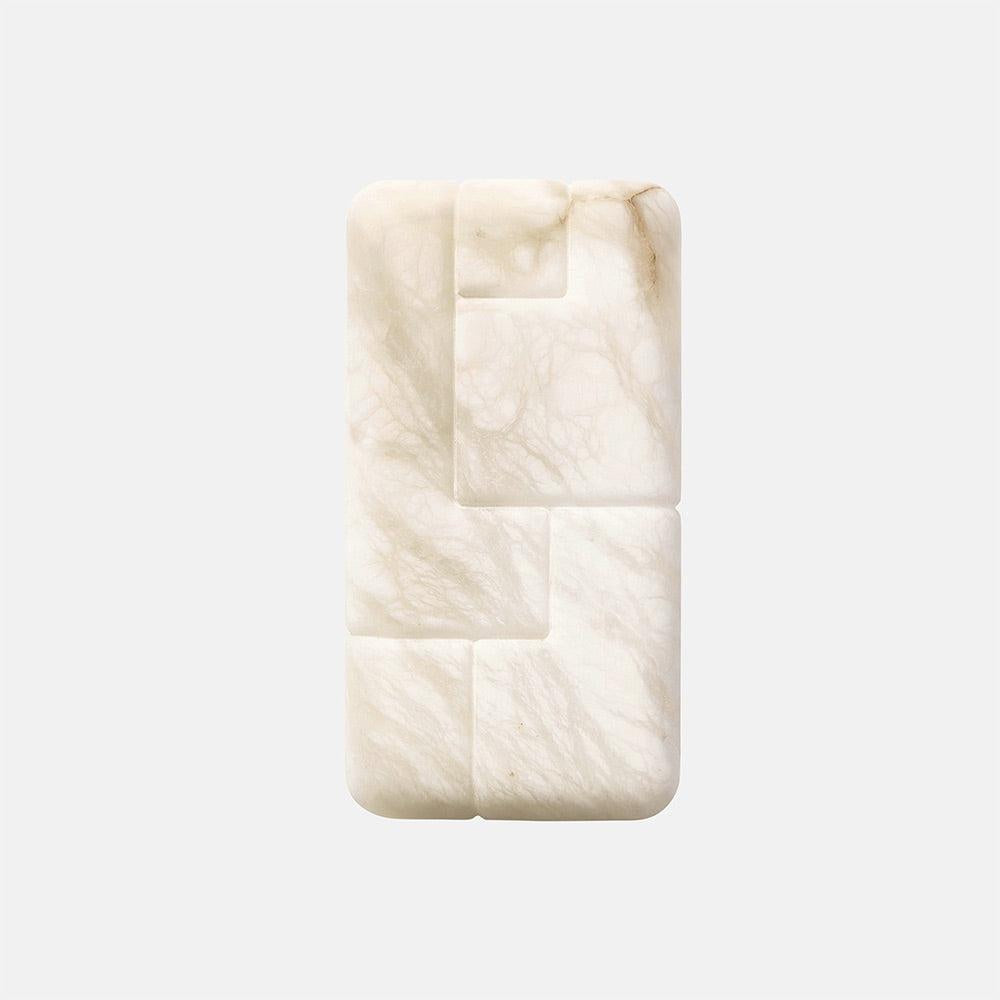 The Eze Sconce is a timeless design, handcrafted in Volterra Alabaster, evoking a sense of quiet luxury. Its geometric form features interlocking blocks that seamlessly merge natural textures with contemporary lines. The alabaster's translucent nature offers a soft, diffused light, ideal for adding warmth to any space.