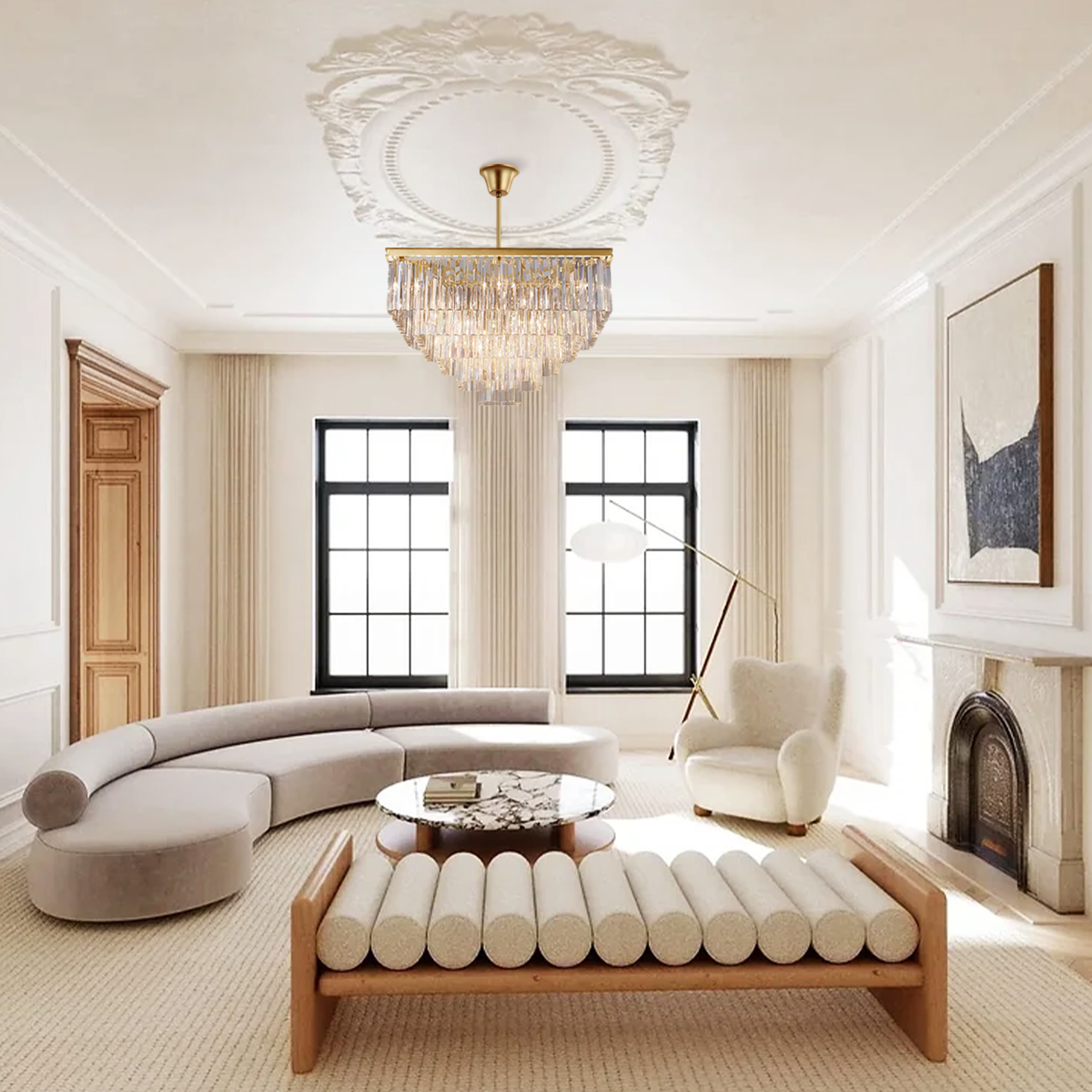 If you are hanging the chandelier above your dining table or kitchen island, you can also decide the size of the chandeliers based on the size of your dining table or kitchen island. We generally recommend that the length or diameter of the chandelier should be between 1/2 and 3/4 of the length of the dining table or kitchen island.