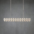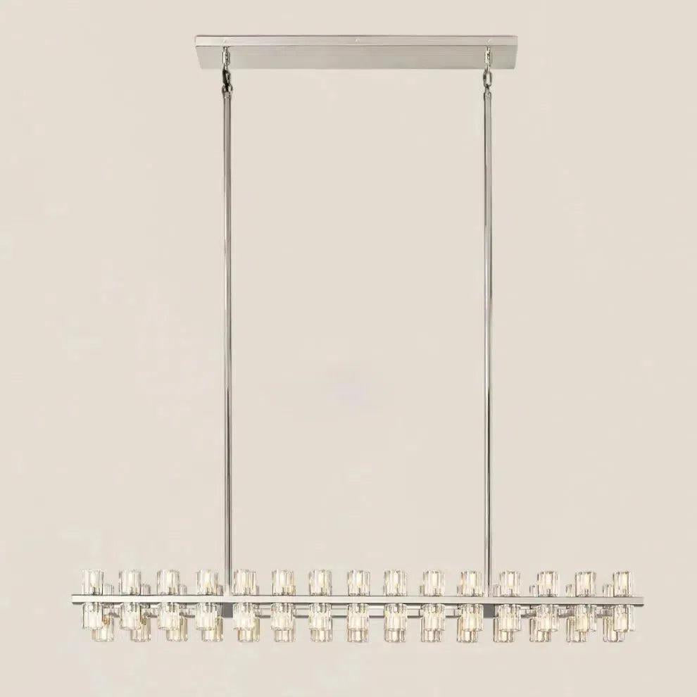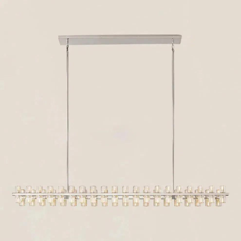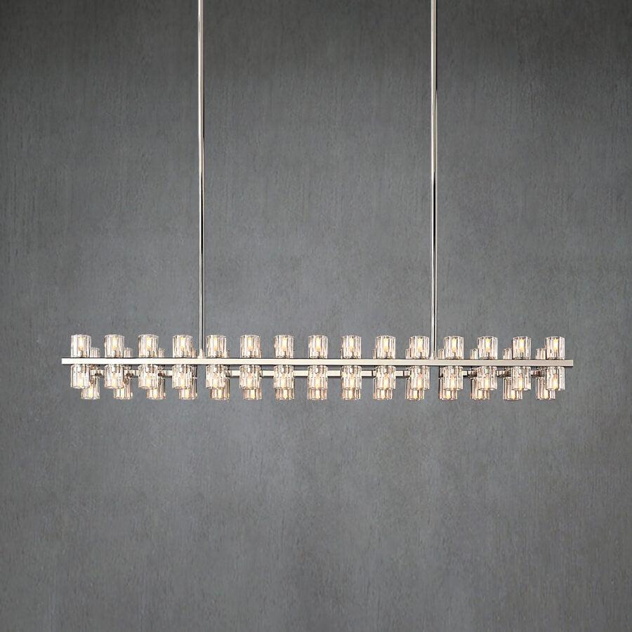 | The Arcochen collection is inspired by the shape and scale of industrial gears, where spokes intersperse with negative space in order to interlock with other gears. Here, the spokes are hexagonal forms juxtaposed with rounded interiors, beautifully crafted of crystal glass, running along a simple, solid metal frame. |