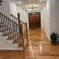 Besides the general rule that the chandelier’s bottom should be at least 7 and a half feet away from the floor. For two stories, what you also need to consider is how will it look from the second floor. In general, staircase chandeliers will be a good choice for space. In term of placing, below are two commonly seen guidance: