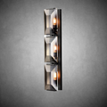 | Inspired by the German chandeliers of the 1970s, our fixtures evoke the boldness and glamour of that era. Using a circle of faceted crystal glass prisms to reflect and refract light, the designer captures the essence of an emerald-cut diamond. |