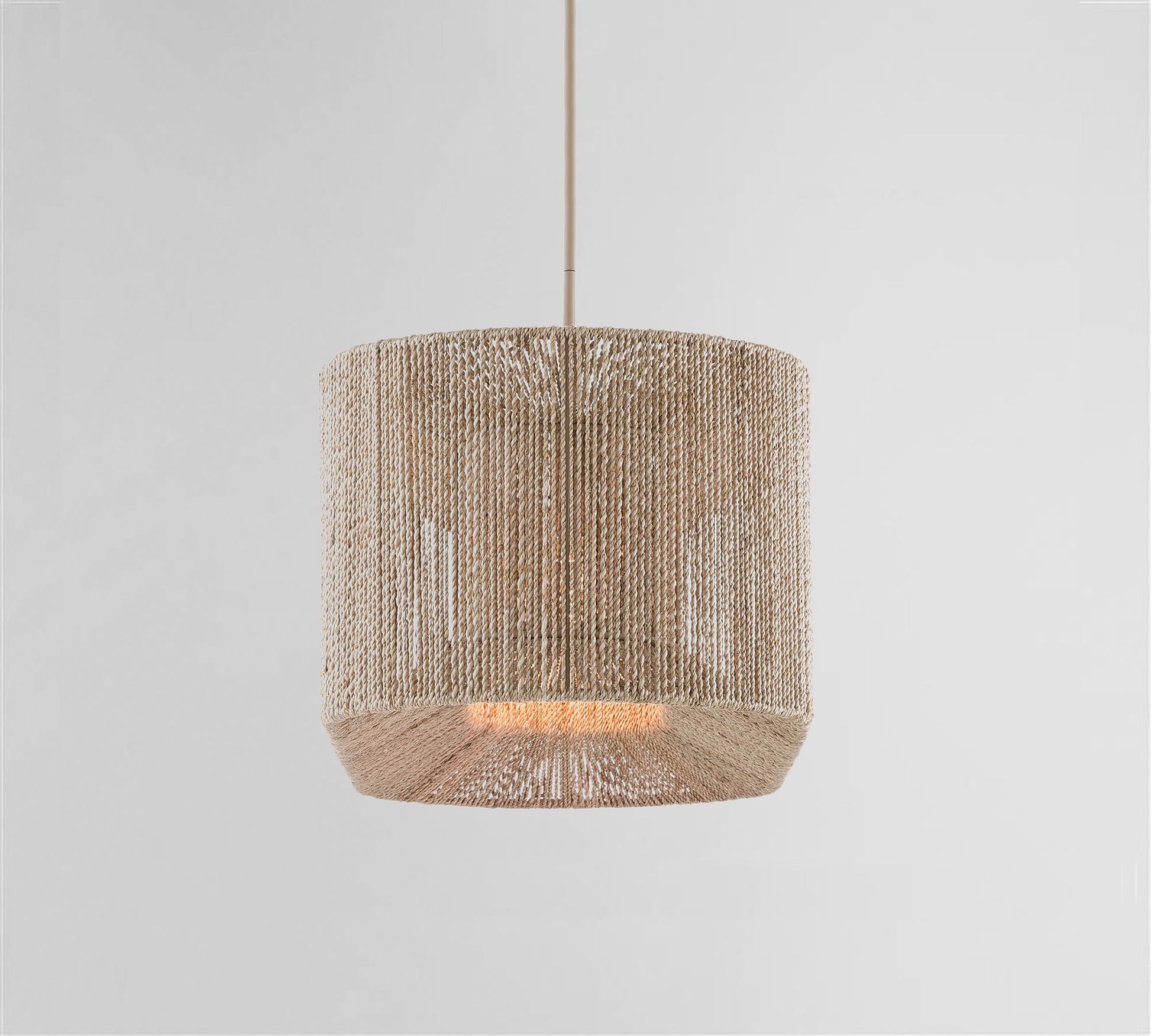 - Crafted of iron with an abaca rope wrapped shade and finished in Beige.