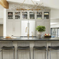 For example, let's say that you have a dining table with 60 inches in length. The chandelier should be between 30 (60 x 1/2) to 45 (60 x 3/4) inches in diameter or length (Same here 1/2 to 3/4 of the kitchen island length)