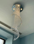 Flush Mounted Spiral Crystal Drops Chandelier Round LED Ceiling Lighting Fixture For Foyer Staircase/ Hotel Entrance