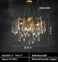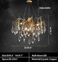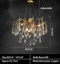 Branch Crystal Drops Chandelier in French Style with Copper Gold Finish for Dining and Living Room Ceiling