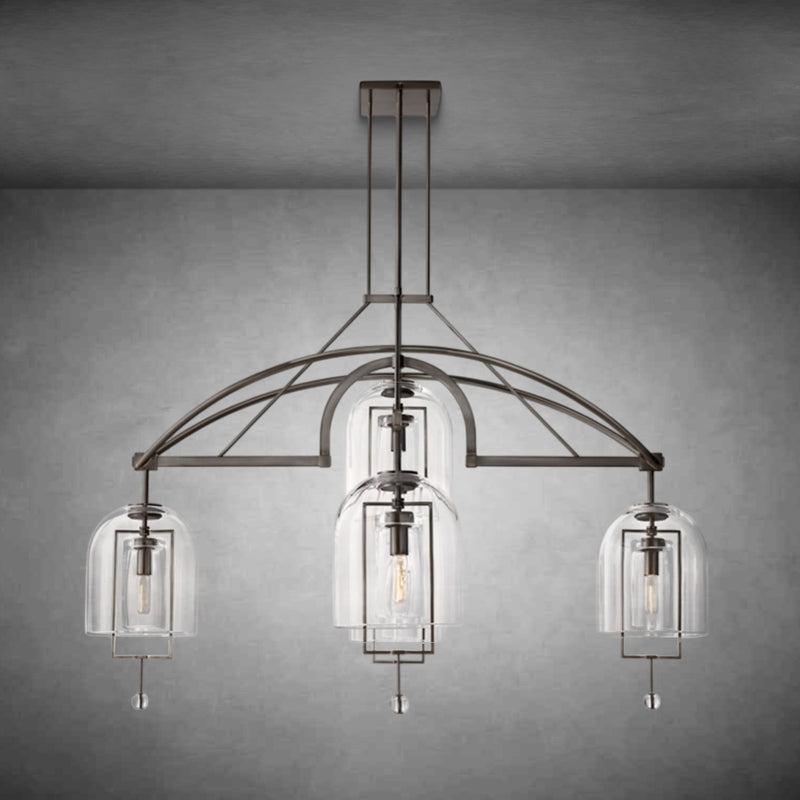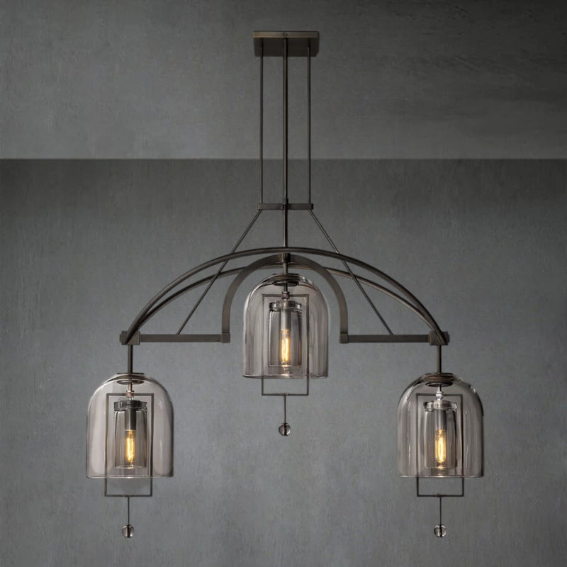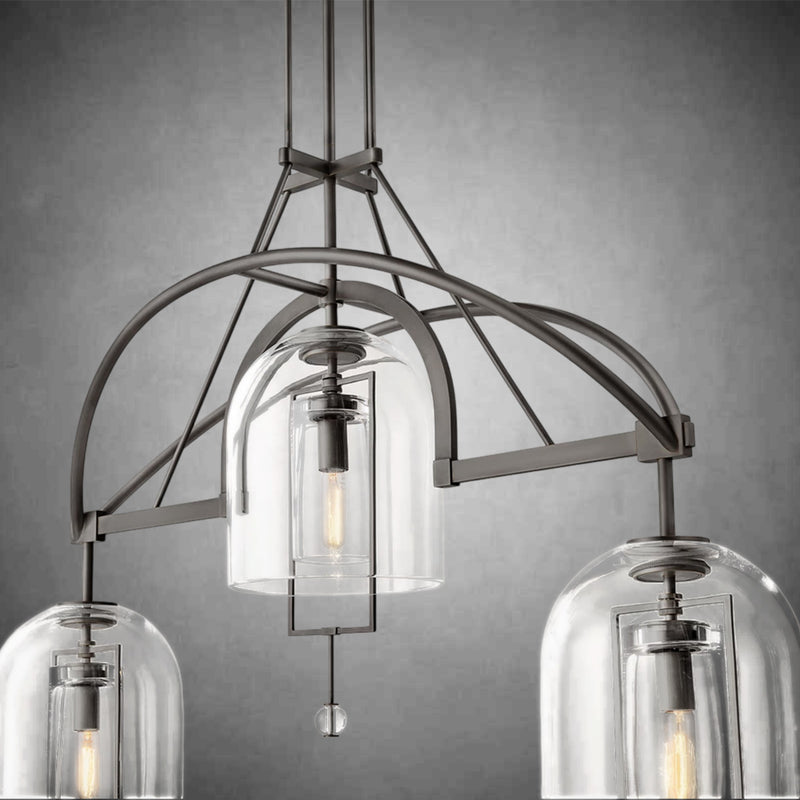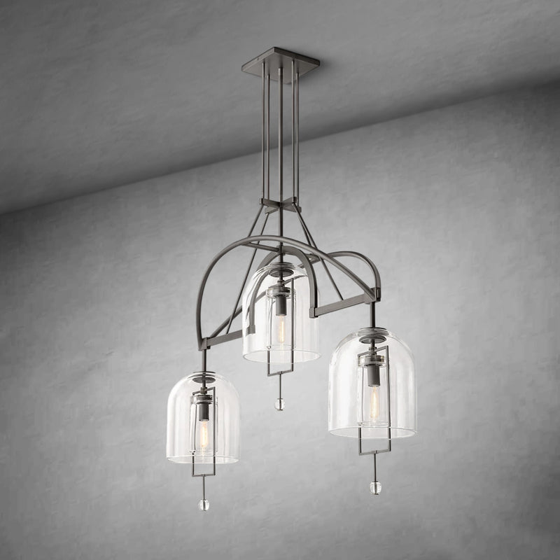 Antique scales and other instruments of measure inspired this collection by master glass designer Alison Berger, in which cloches and spheres of blown glass are suspended from metal frames in perfect equipoise. Blurring the line between lighting and sculpture, each piece acts as a radiant focal point and a potent symbol of balance.