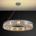 The round shape of this chandelier gives it a modern look that easily blends into any décor. The light from the chandelier is evenly distributed throughout the room, creating a warm and welcoming atmosphere. It can also be used as a focal point in your living room or dining room, drawing attention to its unique design. With its stunning design and quality craftsmanship, the crystal round chandelier is a great choice to brighten any area of your home.