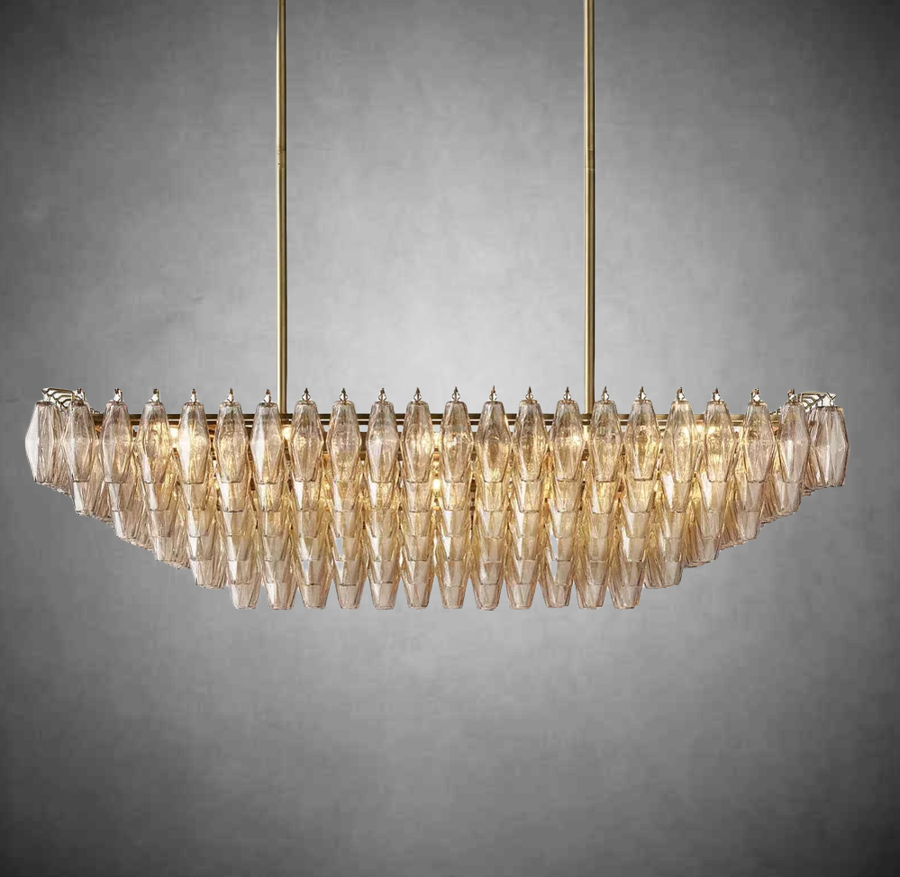 Chiare Glass Tired Rectangular Chandelier 54"74''