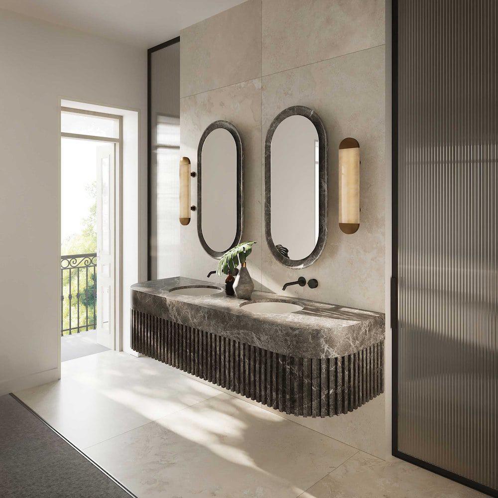 Each piece is made in France and hand crafted in alabaster and unpolished bronze. This timeless, elegant and sober collection is staying true to the materials raw and brutalist character.