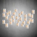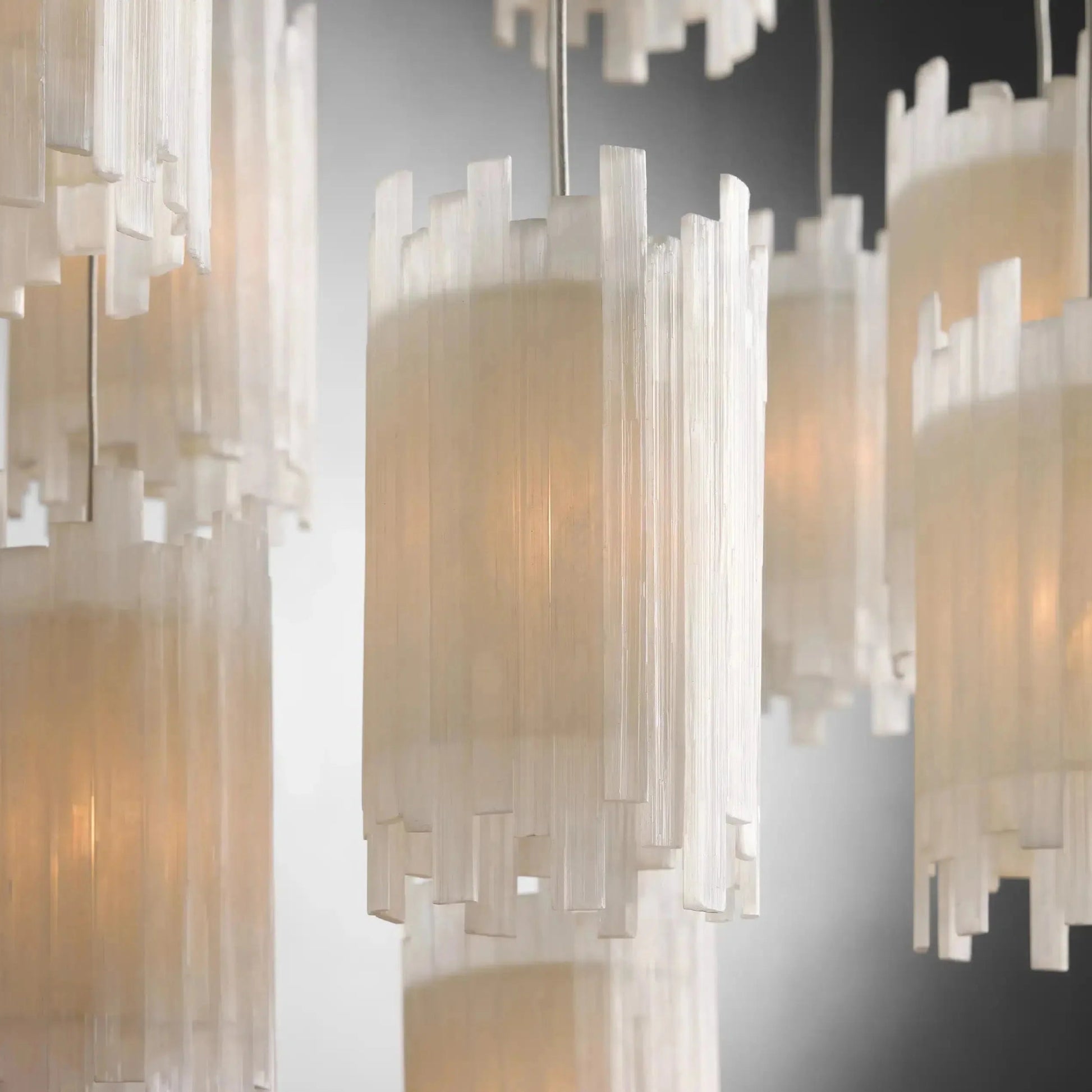 - Capture the beauty of falling stars casting a stunning glow in your home with our Gianna Chandelier. Featuring thin, adjustable PVC cables that are customizable to your space, each drop juxtaposes industrial materials with exquisite natural selenite stone shades. When illuminated, the drops appear to be floating in midair—creating a unique and elevated statement in any room.