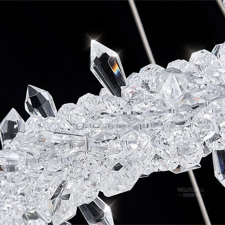 | Gloria Modern Crystal Chandelier Dining Room Chandeliers, inspired by crystal deposits, the crystals on the circular aluminum bracket are like clusters of crystal mines. |