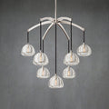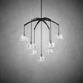 The crystals of the Hemispher Collection fixtures are made of glass that has been lathe-engraved and hand-polished over several days to shine with a mesmerizing luster. The heavy dome hangs from a brass frame that mirrors the delicate curves.