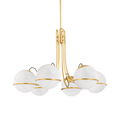 With an elaborately swirled framework, Hingham transports you to the Golden Age of design.Tendrils of Aged Brass wrap around large cloud glass orbs, which seem to float as they emit asoft radiance. Available as a standing lamp, chandelier, or sconce, Hingham is the picture oftimeless style.