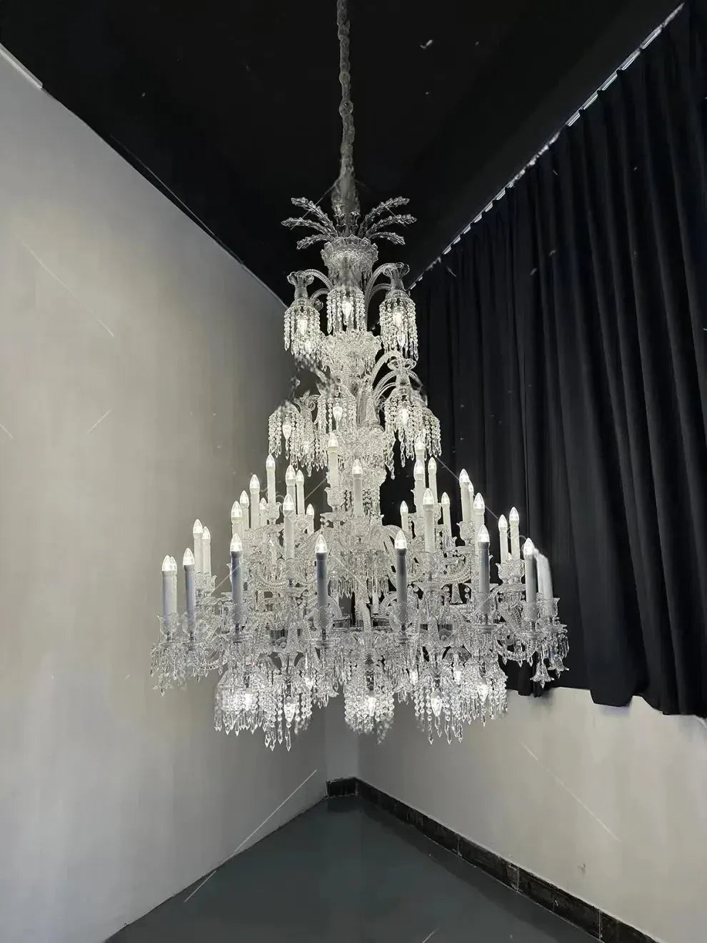 The huge bakala museum crystal chandelier. Imposing in stature with dimensions of 59.05x59.05x82.68 inches and a weight of 405 lbs. This chandelier stands as a beacon of luxury for your living room. Entrance. Stairwell. Lobby. Or double-height space.