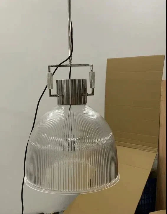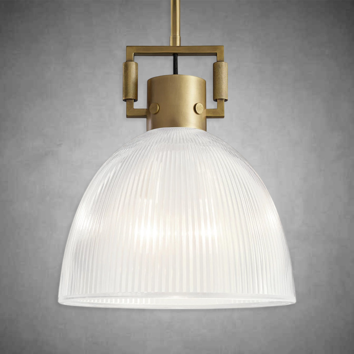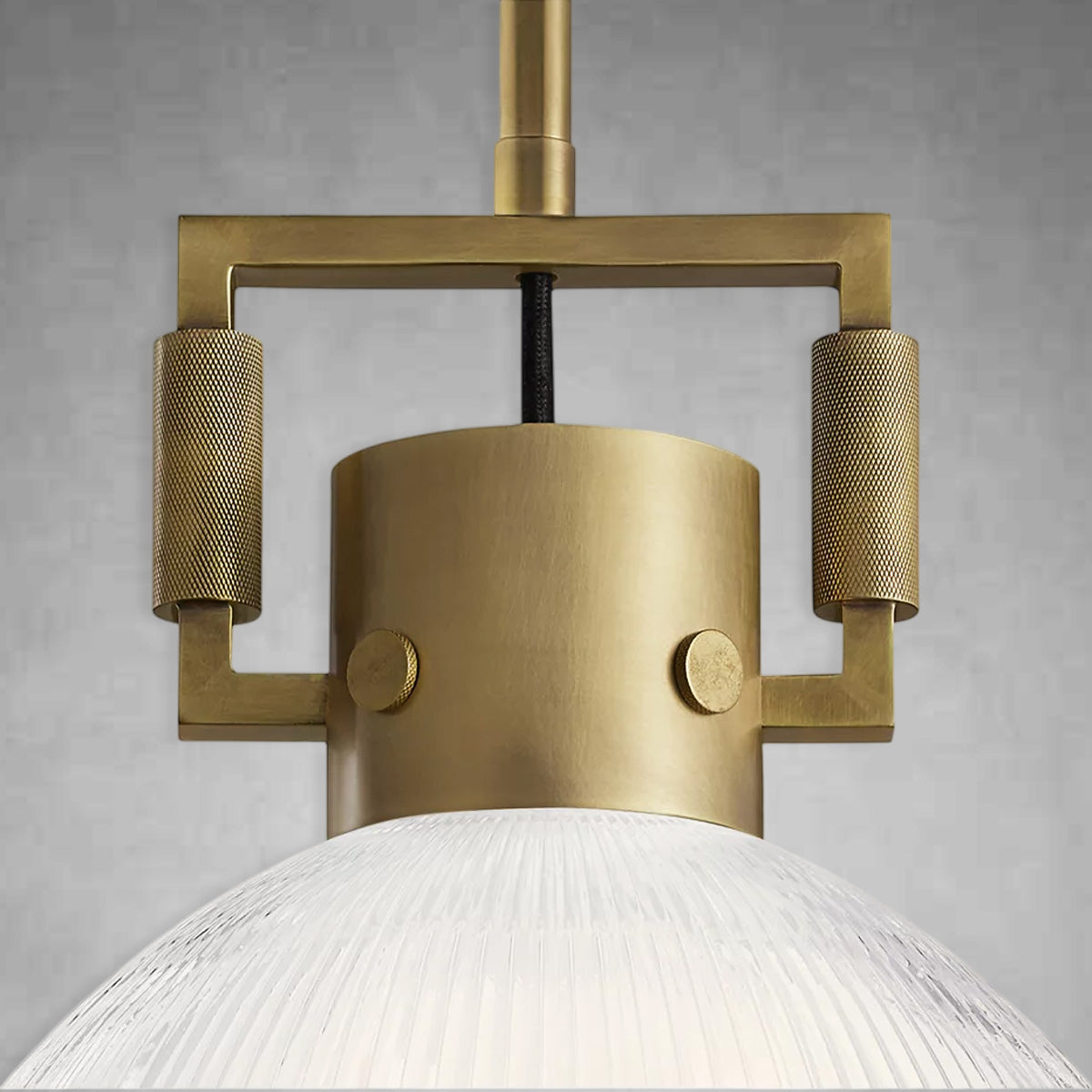 In an elevated spin on utility, our Machine Pendant is inspired by the functional fixtures used in workshops and factories throughout the mid 20th century. Bridging the line between heritage and modernity, the classic domed cloche shade is held in place by a sleek geometric metal yoke, whose precision craftsmanship is defined by crisp angles, diamond knurling and exposed bolts.