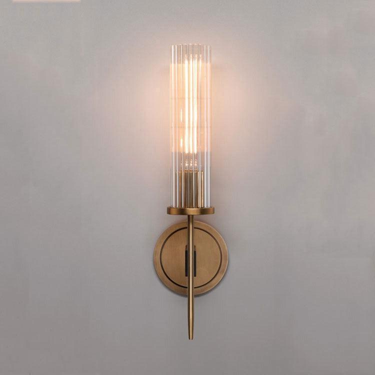 This wall Sconce is a reinterpretation of the simple art chandelier form in solid brass. The fixture features clean lines and sharp angles, and its elegant prismatic glass hurricane showcases an Edison filament bulb that flickers inside like a candle.All parts are hand polished and plated. It’s borosilicate glass shade is fire polished by hand.