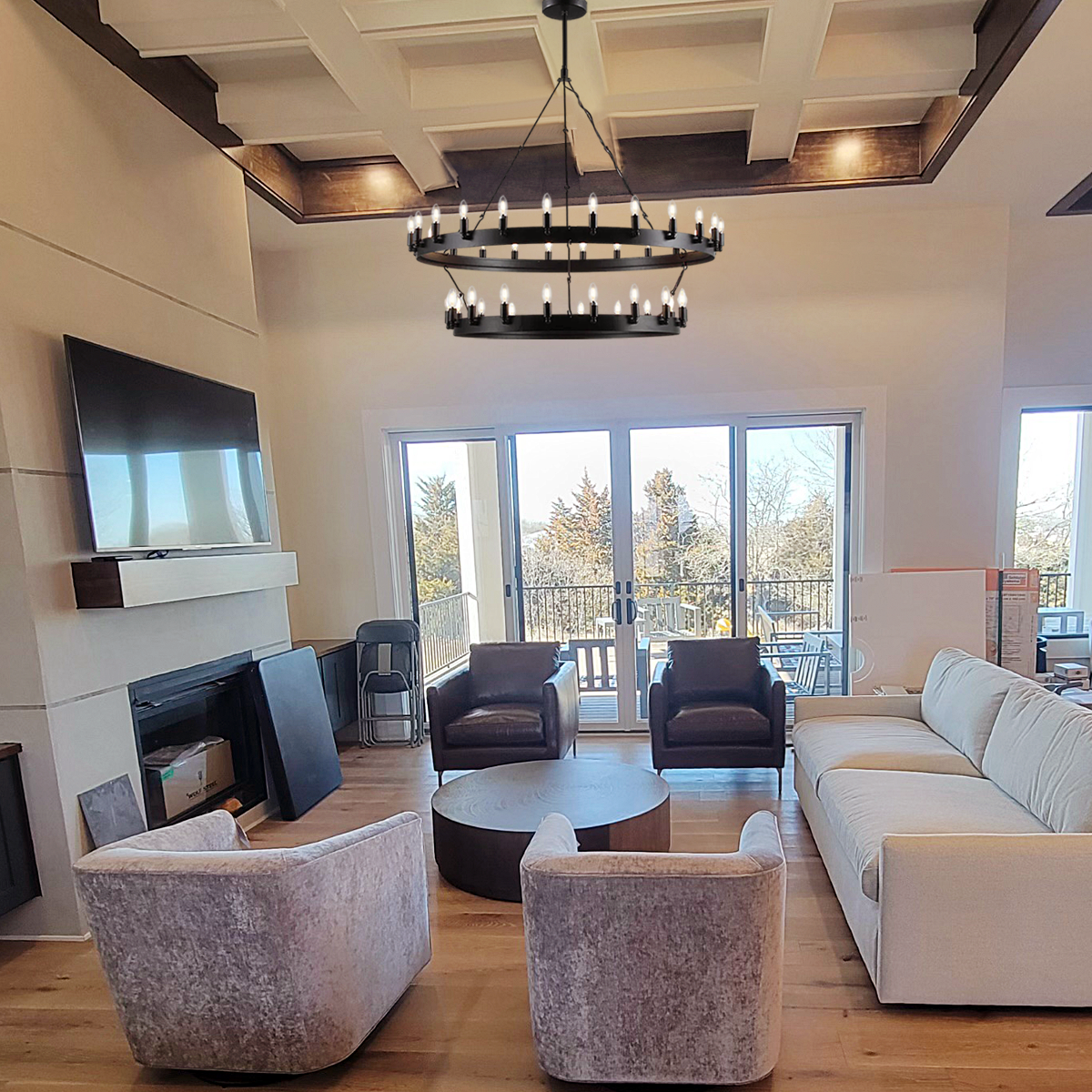 If you are hanging the chandelier above your dining table or kitchen island, you can also decide the size of the chandeliers based on the size of your dining table or kitchen island. We generally recommend that the length or diameter of the chandelier should be between 1/2 and 3/4 of the length of the dining table or kitchen island.