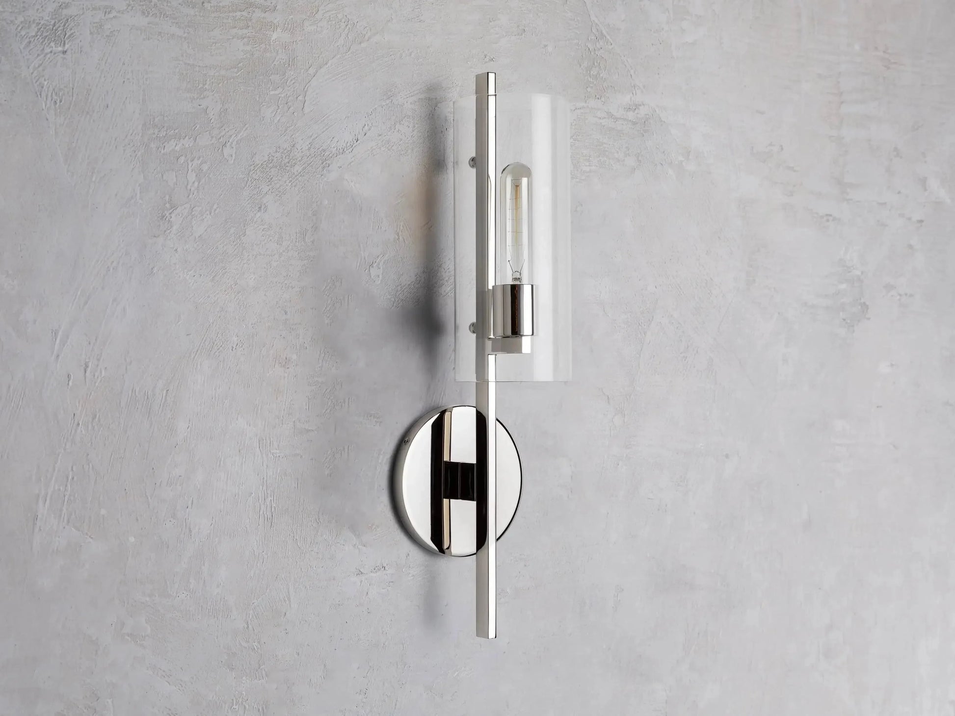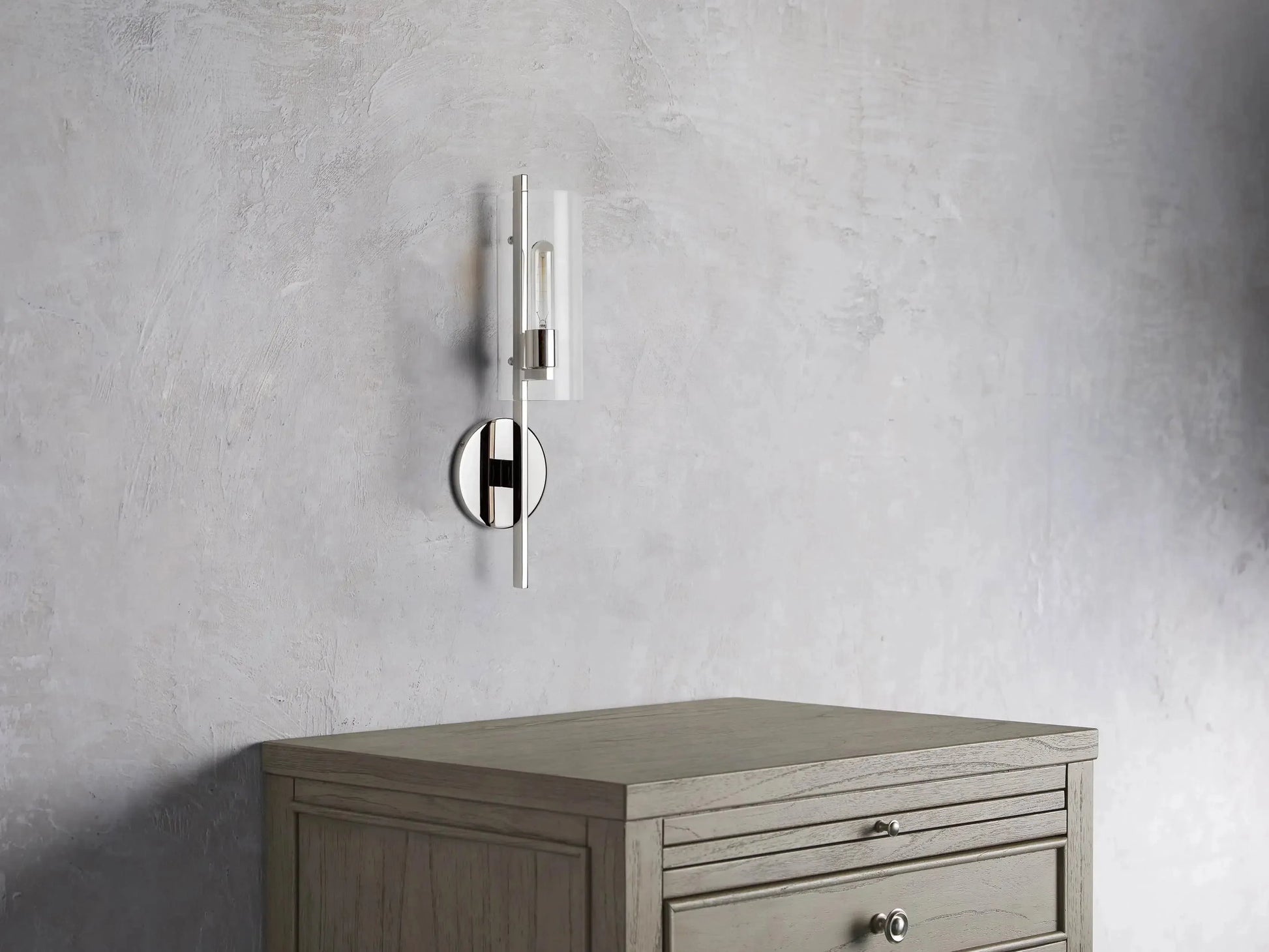 - Featuring a sleek, modern aesthetic, our Kendrick Wall Sconce’s slim design is crafted from glass and steel with versatile metallic finishes that will easily complement your décor.