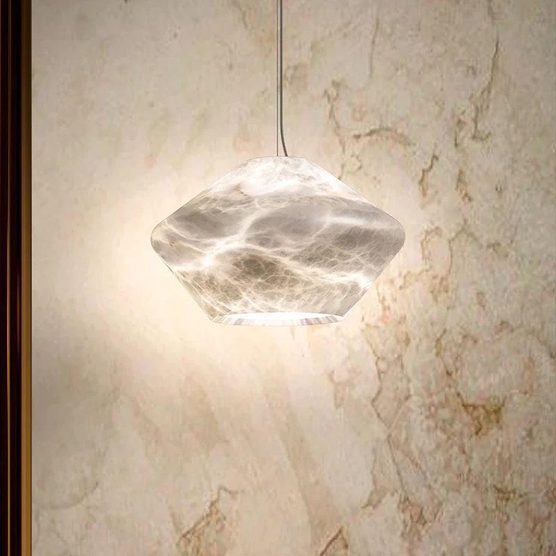 The description of the Alabaster Pendant Light suggests a design that embraces symmetry and harmony. The use of alabaster, a translucent and smooth material, likely creates a soft and diffused lighting effect, adding a sense of warmth and ambiance to any space. It is is a perfect choice for modern space design, suitable for living rooms, bedrooms, kitchen islands, hotels.