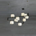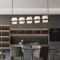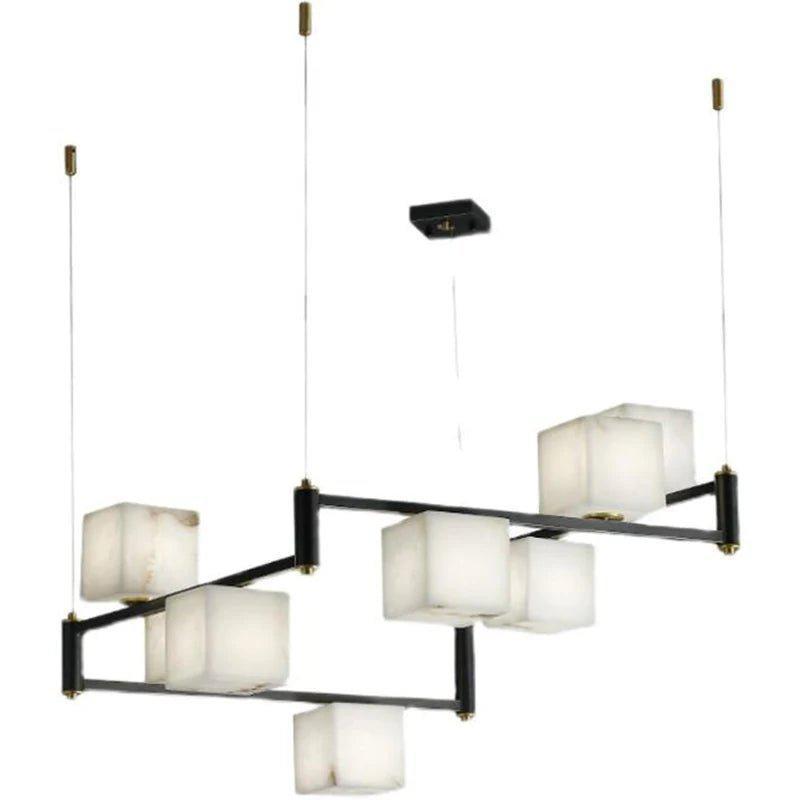 This light is a blend of striking design and practicality. Crafted from natural alabaster cubes with a genuine look. and accented by a linear black metal design. it's a perfect choice for dining areas. kitchen islands. and bars. enhancing both style and illumination in your space.
