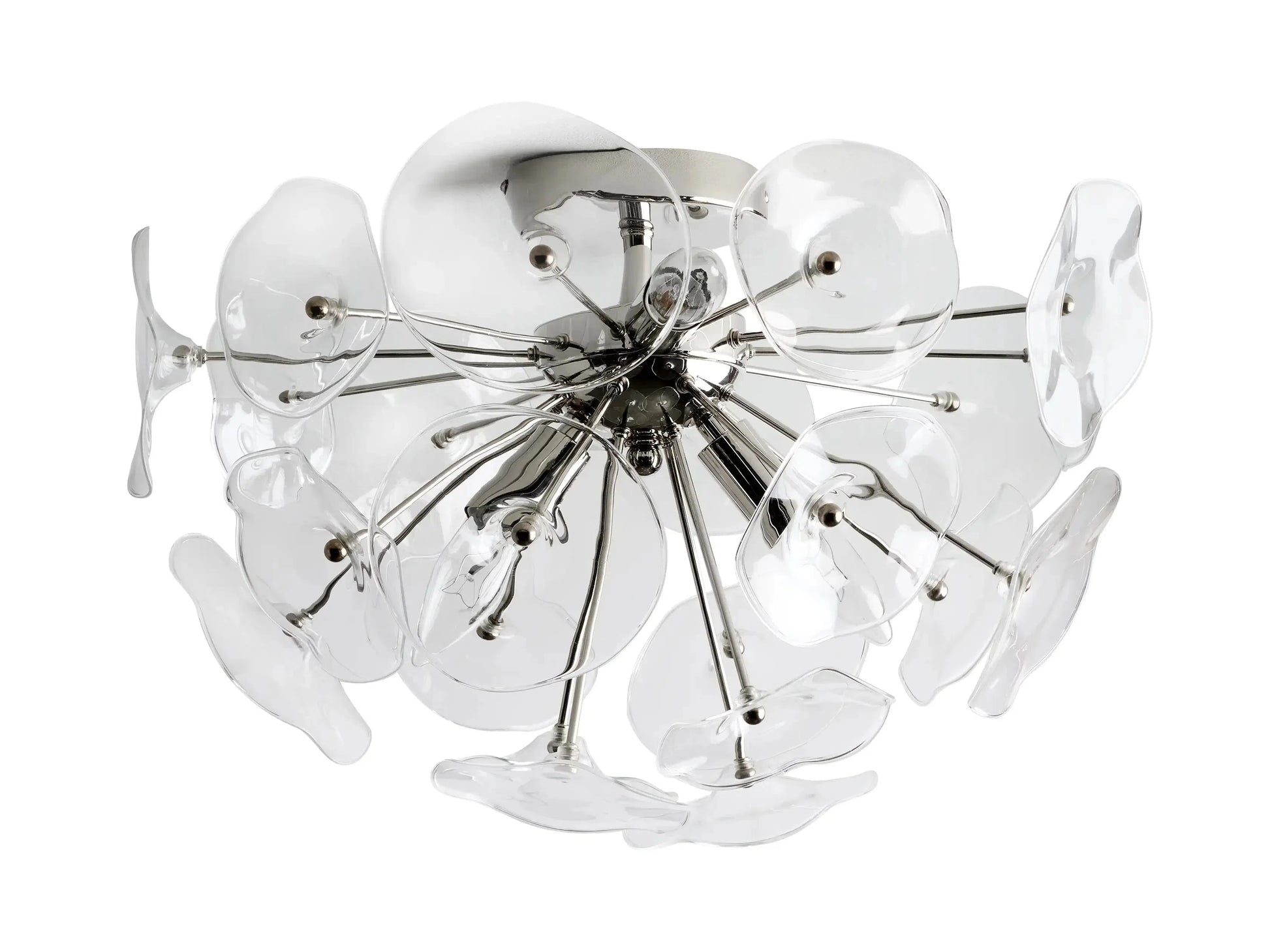 - Base is made from iron with a polished nickel or plated brass finish and surrounded by 22 glass petals.