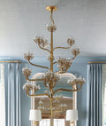 Illuminate your space with our Luxury Branch Flower Gold Chandelier. Inspired by the Century plant, this grand light fixture features 22 lights surrounded by sparkling crystal clusters. The dark contemporary gold leaf finish adds a touch of elegance. Perfect for living rooms, staircases, and bedrooms.