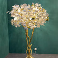 This artistic floor lamp is like a dazzling lush ginkgo tree, using ceramic production simulation ginkgo leaves, white ginkgo leaves and golden copper branches complement each other, the special thing about this lamp is that the simulation leaves are also dotted with a little gold leaves, so that this lamp is no longer monotonous, this decorative floor lamp is particularly suitable for decorating the home or coffee shops, bars and other places to illuminate the place while creating a romantic atmosphere.