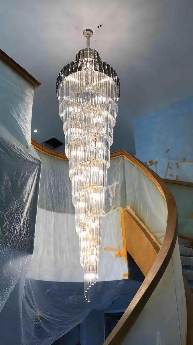 Luxury Extra Large Foyer Spiral Staircase Chandelier Long Crystal Ceiling Light Fixture For Living Room Hall Entrance