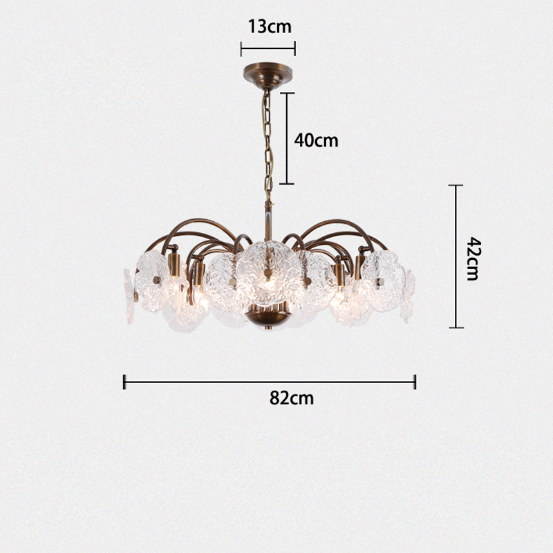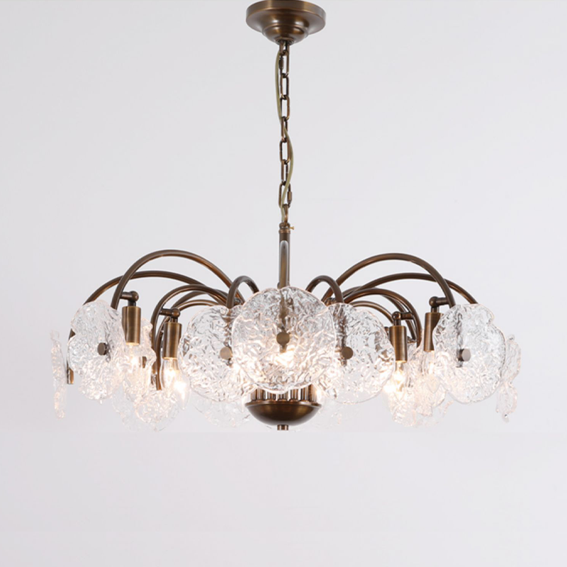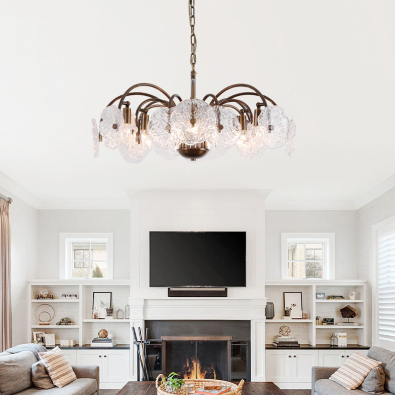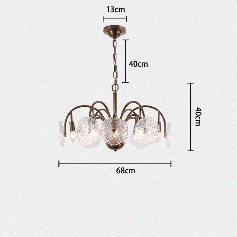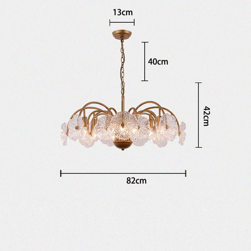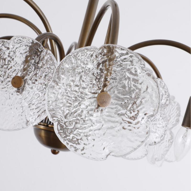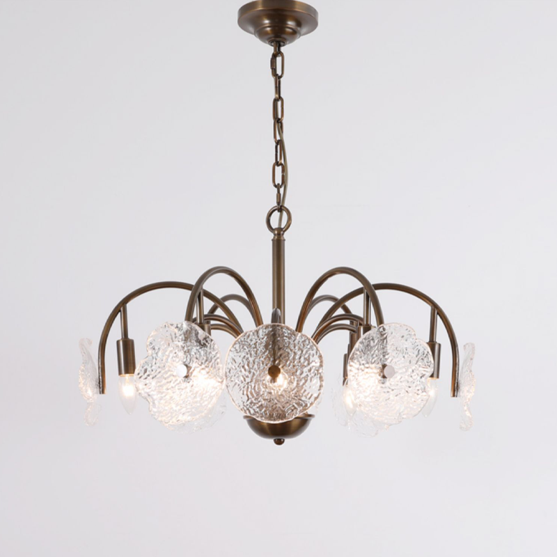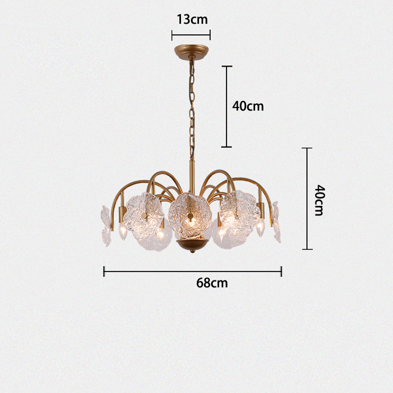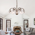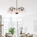 Featuring leaf-like refreshing glass shades combined with a minimalist branch-shaped frame, this chandelier exudes a unique vintage charm. The downward lighting design ensures a bright and elegant ambiance. Perfect for living rooms, dining areas, and bedrooms, this chandelier is a sophisticated addition to any space. |