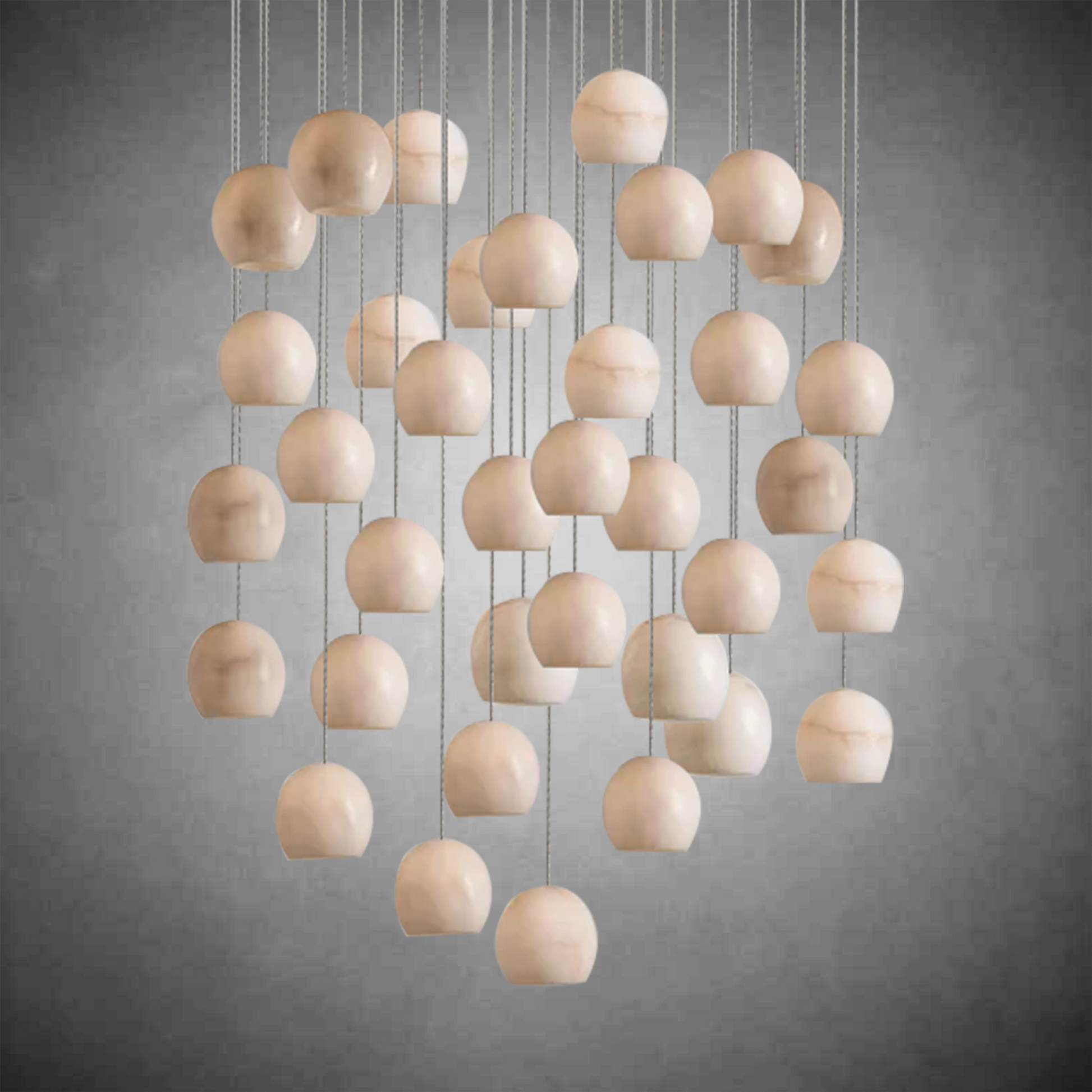 - Featuring an adjustable cable cascading into a curved shade made from natural alabaster stone, our Arica Collection adds a touch of organic elegance. Designed to highlight the beautiful variations found in natural alabaster, each luminous shade showcases delicate swirls of unique veining making each pendant truly one-of-a-kind.