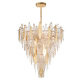 Illuminate your space with unparalleled elegance with this gold leaf finish chandelier. This stunning fixture boasts 12 lights, casting a warm and inviting glow. At 24 inches in diameter, it's perfectly sized to make a statement without overwhelming your space. Elevate your home's ambiance with this timeless piece.