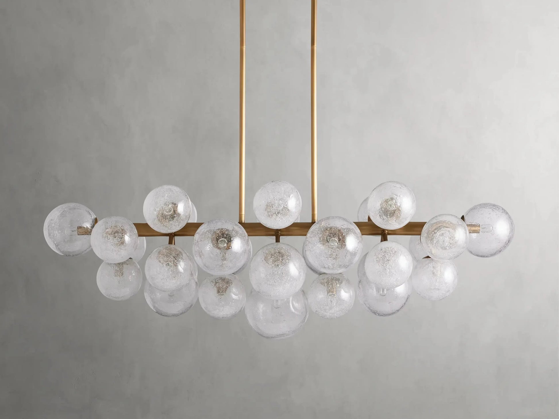 - A fusion of rustic charm and industrial design, our Mandoza Collection features stunning silhouettes and mixed-material style. Each individual glass globe is hand-blown with a reactive technique, creating a dense network of bubbles under a thick layer of glass. The result has a striking effect when illuminated from within, casting light from every angle.