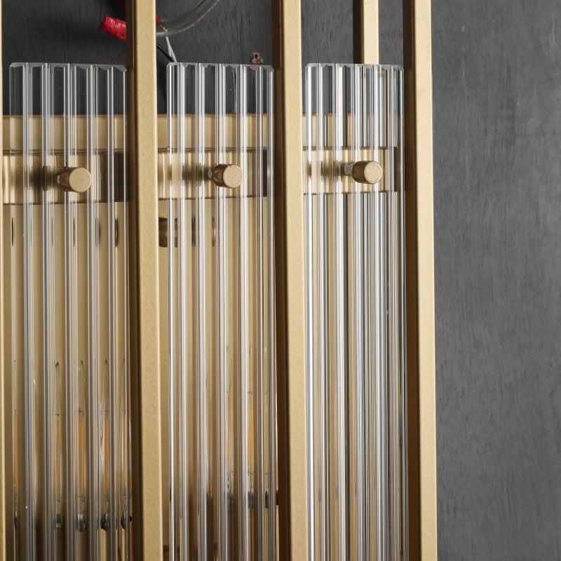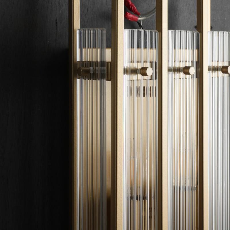 The Marcus Handmade Glass Rectangular Wall Sconce is the modern design made ofa metal frameandfluted glass panels. The handmade glasses are transparent and pure, gives a sufficient and warm light effect.
