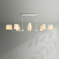 Designer looked to French designs of the 1940s and 50s for this lyrical collection, a minimalist meditation on form and function. Slender brass rods reminiscent of line drawings bend upward to showcase oval linen shades. The overall effect is one of restrained Classicism.
