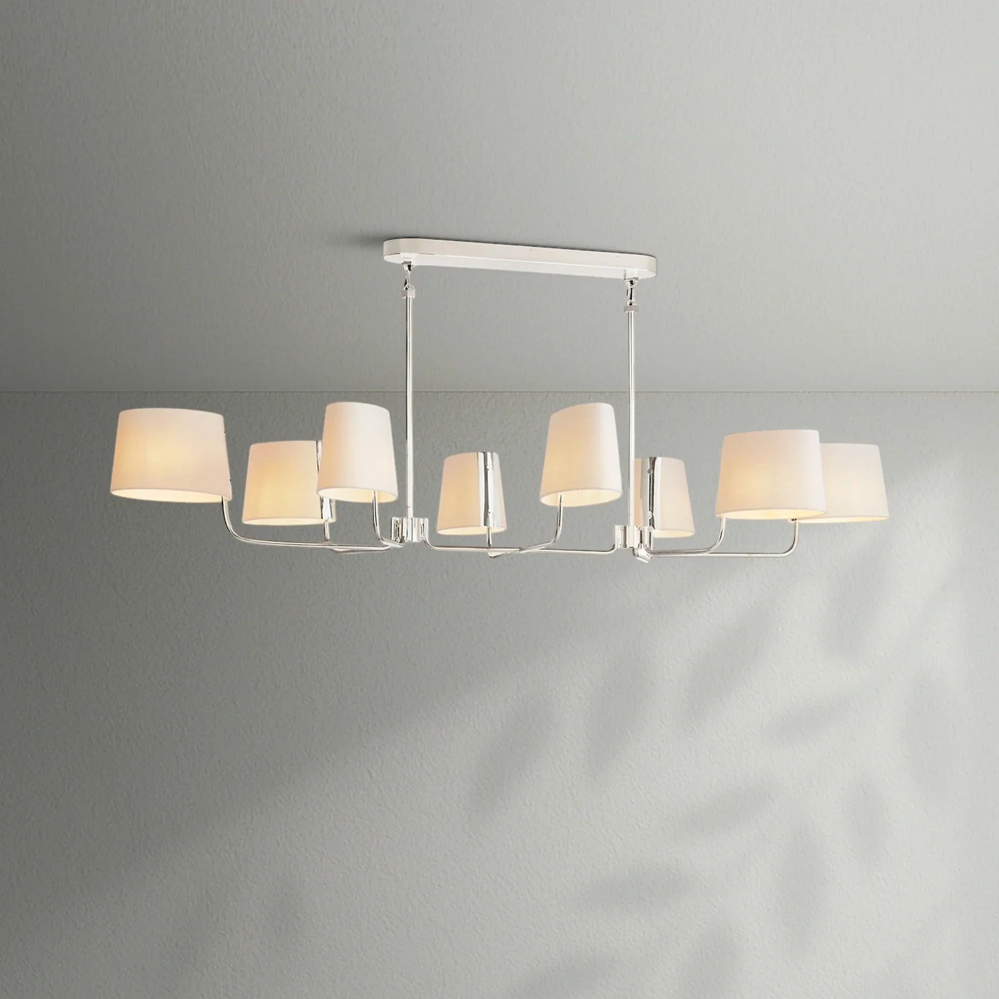 For example, let's say that you have a dining table with 60 inches in length. The chandelier should be between 30 (60 x 1/2) to 45 (60 x 3/4) inches in diameter or length (Same here 1/2 to 3/4 of the kitchen island length)