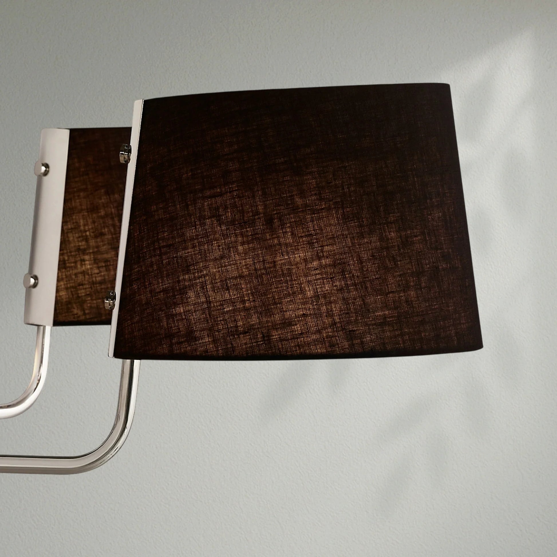 - Each arm is fitted with a tapered oval black linen shade